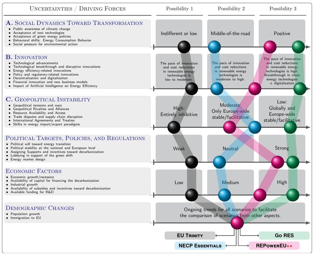 To understand what could influence Europe’s long-term energy transition, the first step was to map out all factors that may significantly affect future developments, encompassing both uncertainties and determinants.