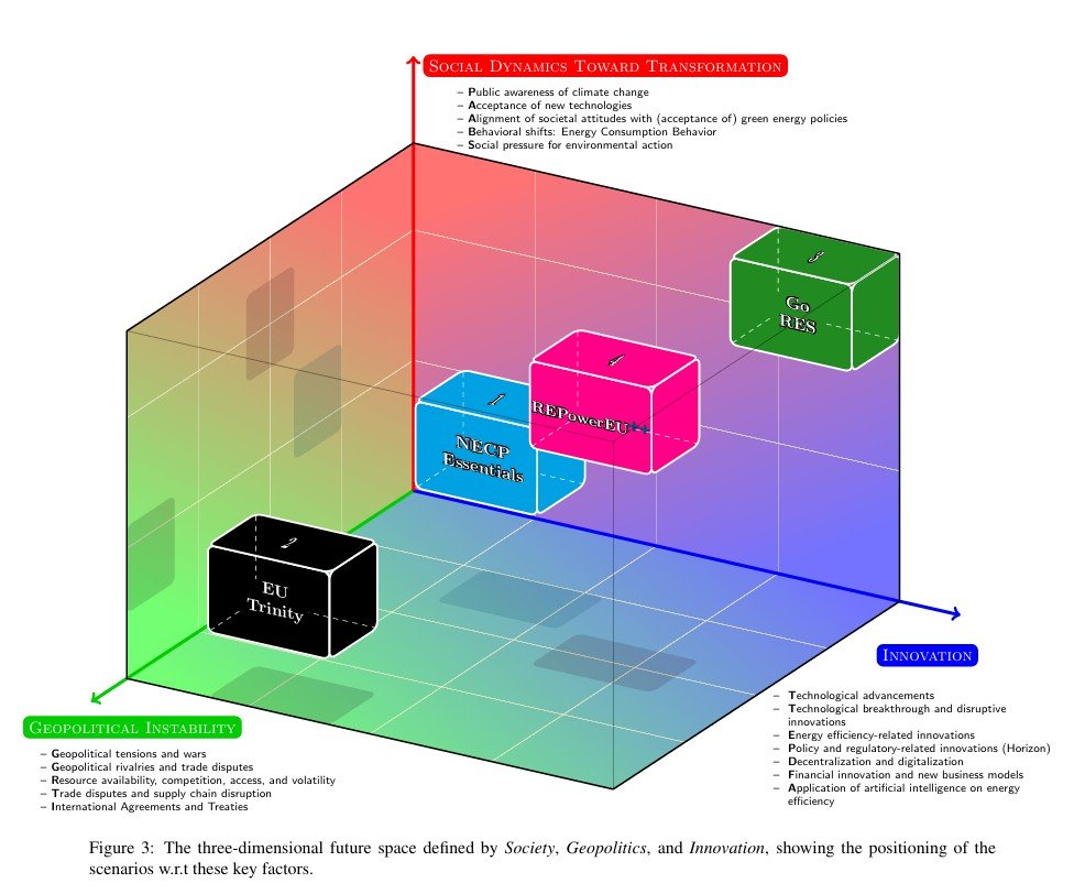 The following figure[JS1.1] illustrates the positioning of these scenarios within the three-dimensional future space defined by the primary key factors: